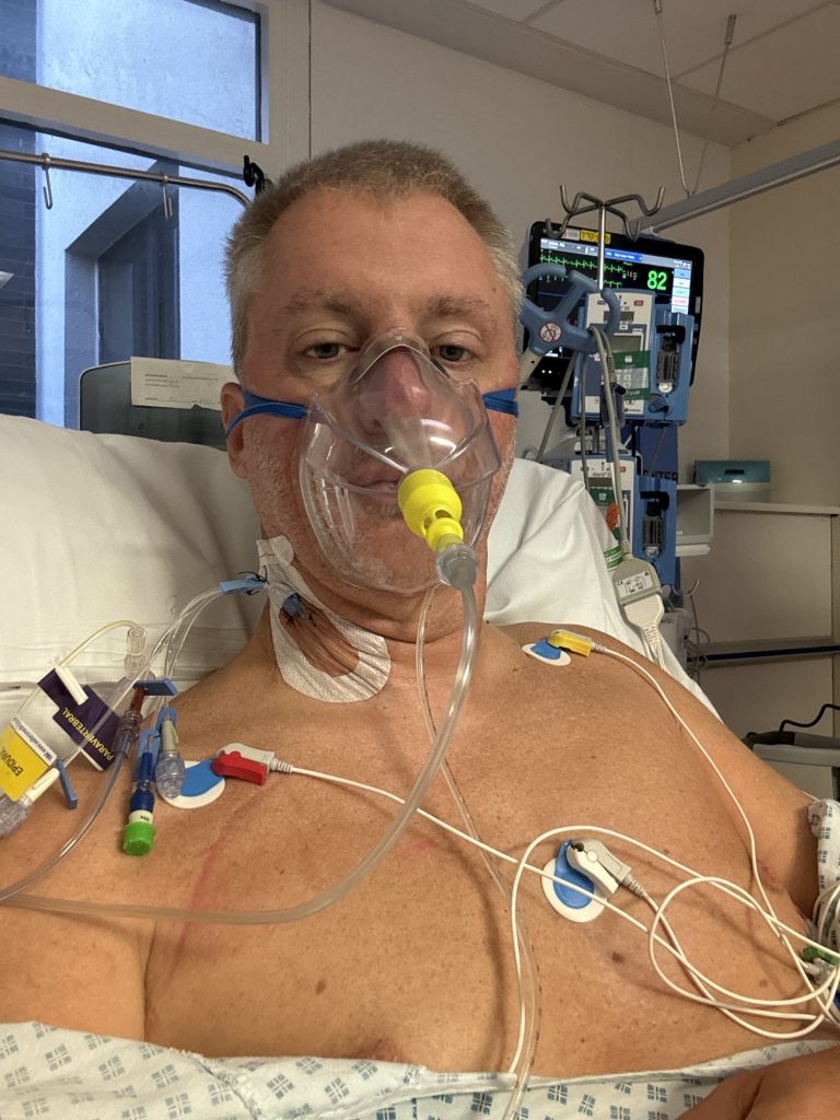 I’m very wired up though in ICU. Monitors on everything; drains out of chest and stomach etc. I have had a stream of doctors coming to talk to me. In the room I’m in there are two other patients I think. I have a dedicated male nurse assigned to me for overnight.